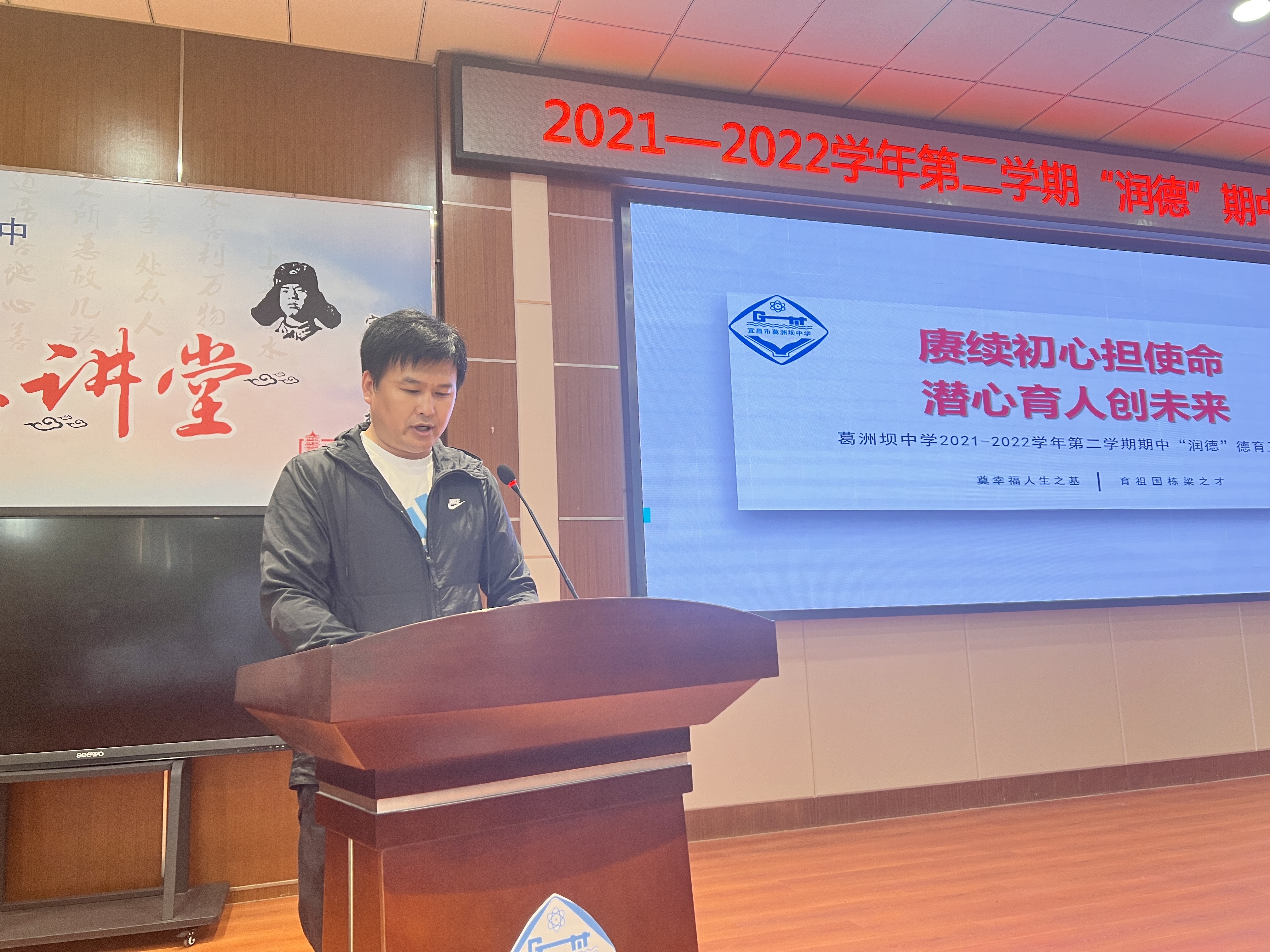 为进一步落实立德树人根本任务,围绕 “培根铸魂,启智润心”的育人目标,积极践行“德如水、身如坝”的育人理念,充实我校“润德”德育品牌,5月13日下午,我校召开了以“赓续初心担使命,潜心育人创未来”为主题的2021-2022第二学期期中“润德”德育培训会。会议由学工处副主任罗静老师主持。