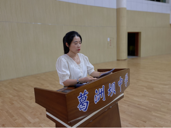 向主任带领同学们学习《葛洲坝中学关于学生使用手机的管理规定》