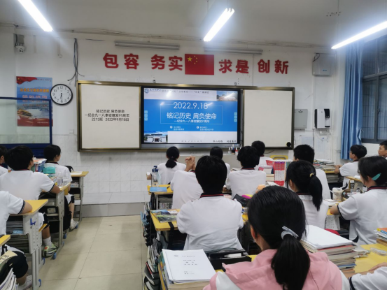 微班会上,同学们通过观看纪录片,了解了“九一八事变”的历史背景、事件经过及日本侵华战争的累累罪行,见证了中华民族英勇抗击日本侵略者的伟大过程。一幅幅画面,极大地激发了同学们的民族荣辱感,也让他们认识到了肩上的重任。