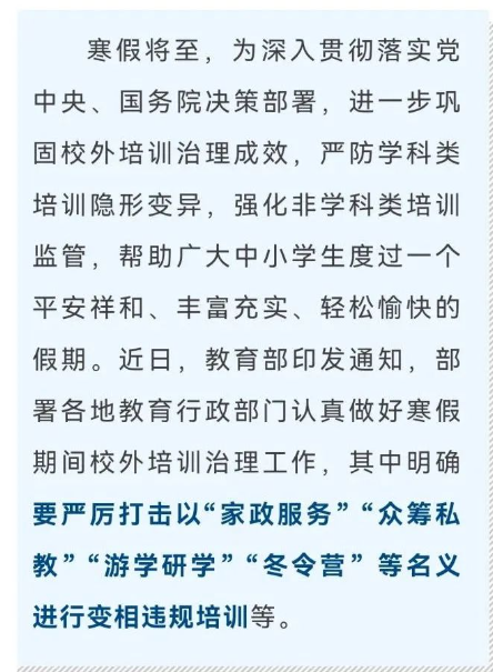 教育部发通知了| 寒假期间严厉打击这些变相违规培训
