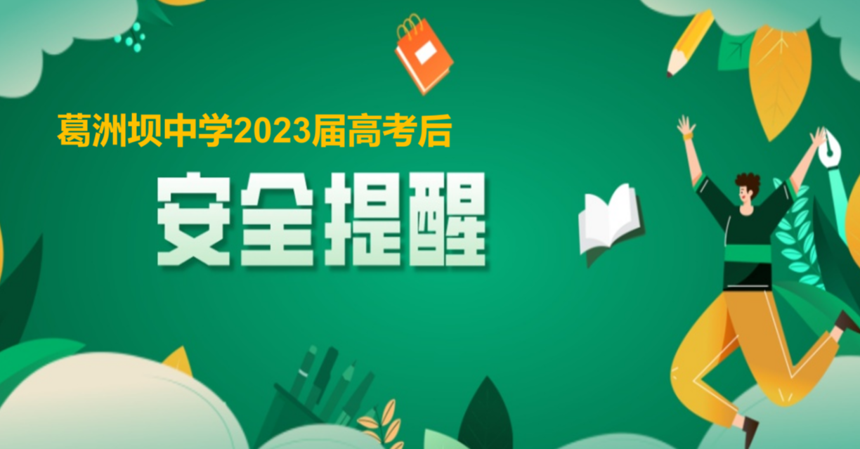 一年一度的高考已经结束,社会活动随即增多,为确保我校每名毕业生高考后的健康平安,我们要强化安全意识,守好安全底线不放松。根据宜昌市教育局《关于做好高考后学生安全工作的温馨提示》精神,现将安全教育的重要内容提示如下,请各位家长注意积极教育提醒,请各位同学主动防范安全隐患,共同筑牢安全防线。