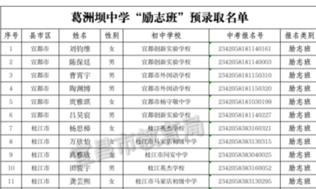 葛洲坝中学“励志班”预录取名单公示