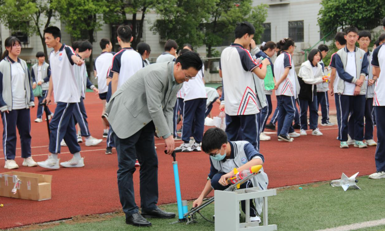 5月12日下午,宜昌市葛洲坝中学第十四届科技节系列活动之水火箭比赛于操场上顺利举行,一个个精美的水火箭承载着同学们的梦想腾空而起,比赛现场热闹非凡。
