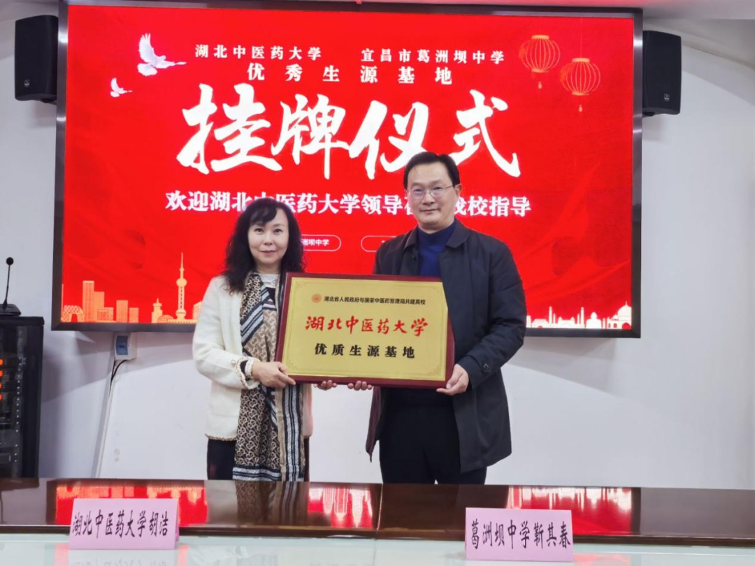 12月3日,湖北中医药大学外国语学校胡洁书记一行四人到访我校,代表湖北中医药大学授予我校“湖北中医药大学优质生源基地”牌匾。我校靳其春副校长、教务处和教科处全体成员参加授牌仪式。