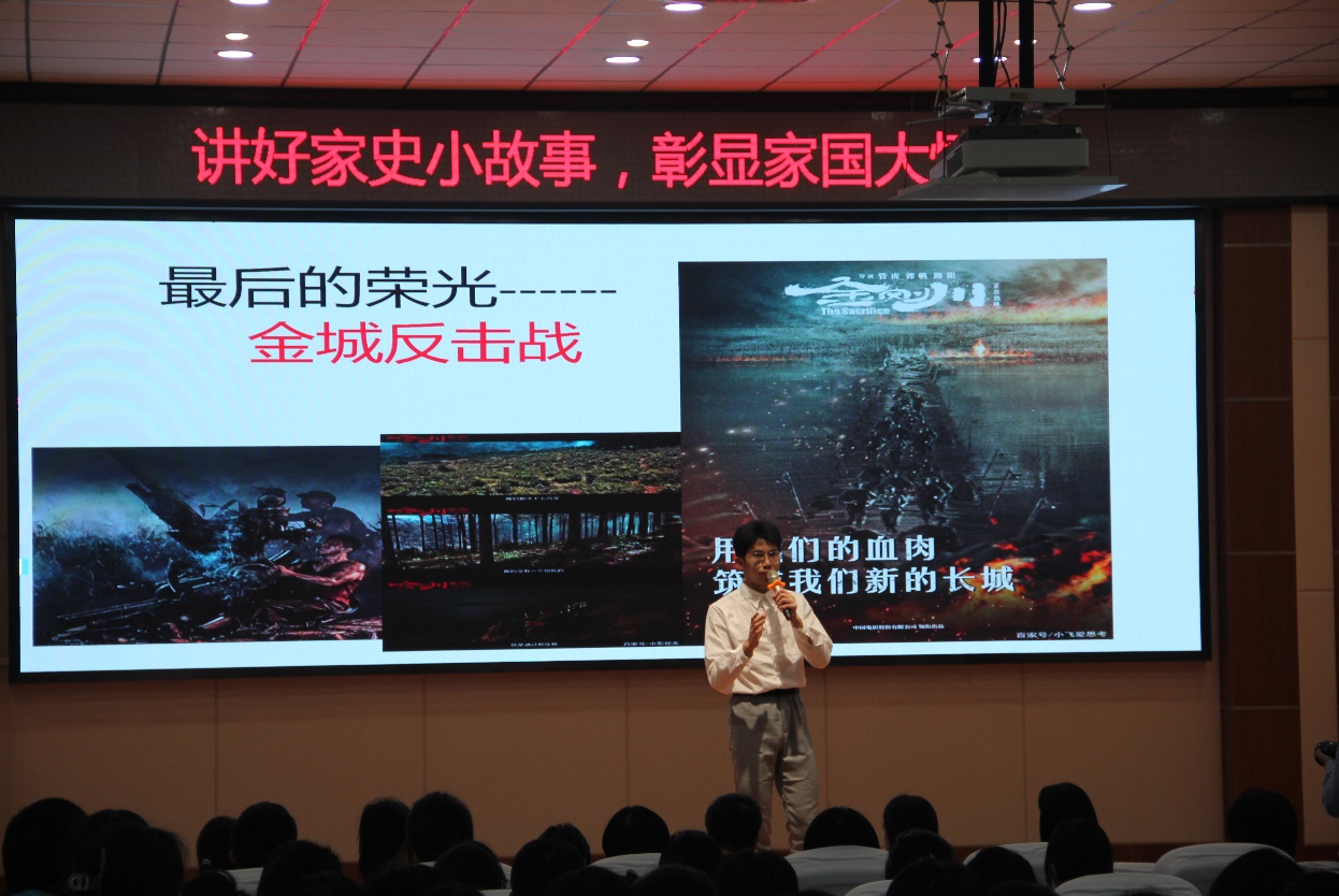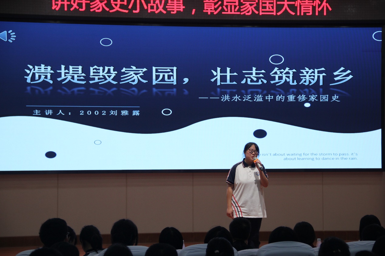 5月20日晚,按照预定的时间,以“万家灯火续弦歌,千里江山谱新章”为主题家史宣讲活动正式开幕。精心的准备下,同学们盛装出席为在场所有嘉宾老师与同学带来了一场场动人心弦的演出。不仅仅是主讲人的口头讲述,活动中还穿插了有同学们自编自导的历史情景剧,大大加强了临场感。有的同学准备了家人口述历史的录音,在长辈的乡音陈述中,曾经的往事鲜活了起来。更有讲述父亲从军生涯的主题演讲中,身为主角的家长身着军装亲自上台,父女共同倾情演绎感动了在场的每一个人。节目中穿插着同学们以历史为主题自行填词的歌曲,配上精心制作的视频,带来了一场精神上的盛宴,展现出我校学子无与伦比的青春活力和创新思维。