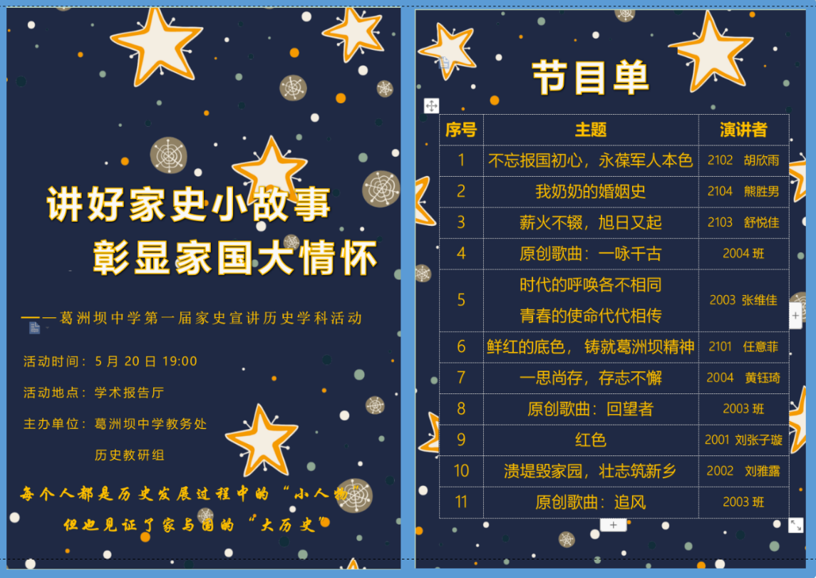 家史活动方案,定稿后通过电子档与纸质文稿在高一高二历史方向班级进行宣传