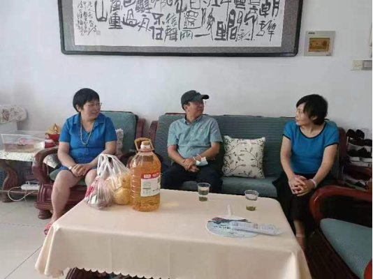 校长吴益民、工会主席李群与学党湾社区书记一道慰问结对老党员。