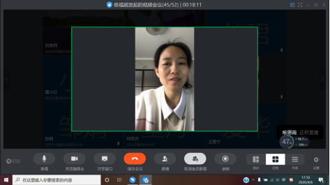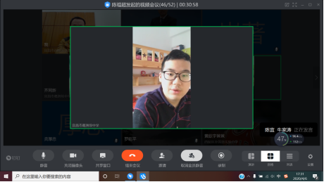 会议首先由三位班主任老师分享疫情期间的班级管理经验。冯臣斌老师主要介绍了引领学生合作学习、居家学习日记的分享、学生的成长导师和家访的落实,抓好学科教学等做法;喻愿霞老师主要从疫情期间,学生安全教育的方法,充分利用班级人力资源,加强多方交流与沟通以及利用网络完善班级各种管理制度等方面的介绍了经验;陈宜老师从年级统筹安排,经验互相分享和以鼓励为主,营造班级整体学习氛围两个方面的做法进行了分享。
