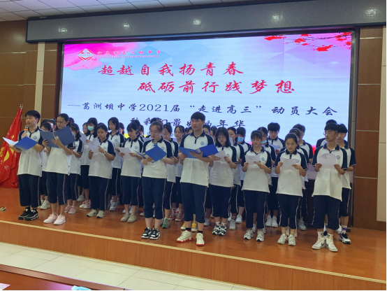 最后,田苹书记向2021届高三年级全体师生发起动员令:高三会是我们最专注、最充实、最接近梦想的时期。奋斗是青春最亮的底色,拼搏是青春最好的代名词。不怕苦,不畏难,不言败,不放弃,不松劲,去超越自我!同学们,高三路上,你们从来都不是孤军奋战,家长倾情陪伴,老师循循善诱,学校全力支持,你们一定会实现人生的梦想。同学们,向着高三,出发。