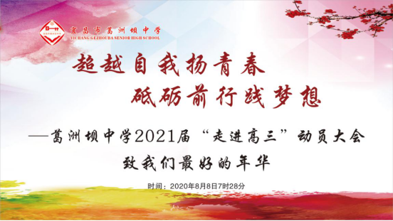 年年岁岁景相似,岁岁年年人不同。一个月前,有一群人走出了考场。硝烟散去,旌旗又起。2020年8月8日上午7:28,葛洲坝中学2021届全体高三师生齐聚学术报告厅,共同迎来“走进高三”的激动时刻。