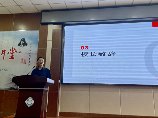 7月22日下午2:30开营仪式在庄严的国歌中拉开序幕。靳其春副校长为励志班特授班旗,将光荣的使命交予新一届的励志班新生。谭子刚校长面向全体励志生发表了慷慨激昂的讲话,勉励全体励志生要将品德修养放在首位,牢记学校“包容、务实、求是、创新”的核心价值观,努力践行“立德如水,立身如坝”的思想理念,立鸿鹄之志,成栋梁之才,担复兴之业。田苹书记为励志班班主任艾超鹏老师颁发聘书。艾超鹏老师和励志生代表黄鑫蕊同学分别做了发言。在热烈的掌声中,谭子刚校长宣布2021级励志生夏令营开营。