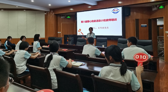 2021年10月7号晚7:30,我校第八届爱心拍卖活动小拍卖师培训会在汇贤楼216会议室举行,本次培训由湖北省拍卖协会王代龙副会长主持,校长吴益民老师、黄家军老师、高一年级政治组教师以及18名小拍卖师参加了本次活动。