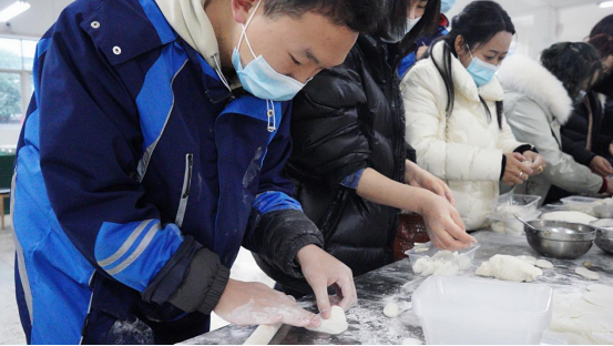 除了技艺比拼,大赛还设置了师生及家长同包饺子环节,其乐融融的景象,丝毫感受不到严冬的寒意。学生代表黄钰琦发言表示,参加活动饱了眼福和口福,还提高了劳动实践能力,丰富多彩。