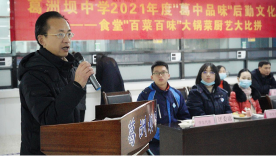 经过精心策划与紧张筹备,1月8日下午两点,万众瞩目的“百菜百味”大锅菜厨艺大比拼在学校食堂拉开帷幕。校长吴益民、党委书记田苹、副校长颜颉、工会主席李群、总务处主任祝国强、总务处副主任李璇以及师生、家长代表参加了本次活动并担任评委。