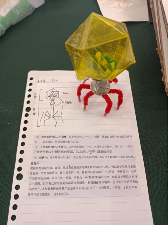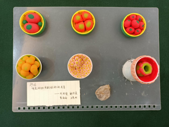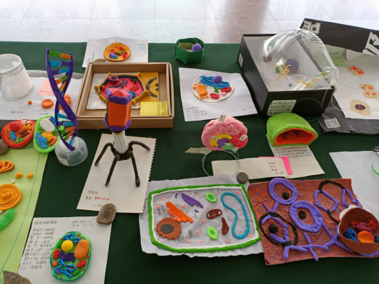 所有作品均由学生亲自设计、精心制作,充分展示了同学们的奇思妙想。在制作模型的过程中,学生们展现出了绝妙的创意和超强的动手能力,呈现出一个多姿多彩的生物世界。制作过程中同学们利用橡皮泥、黏土、乒乓球、硬纸板等日常生活中常见的原料进行制作体现出环保理念。