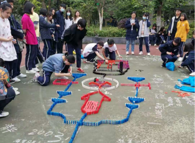2021年4月23日,高一年级所有班级在篮球场举办了葛洲坝中学多米诺骨牌大赛。本次活动由高一数学组负责,宋爱华、祝海燕、聂俊杰三位老师共同参与评分。在全体班主任的帮助下本次大赛圆满成功。