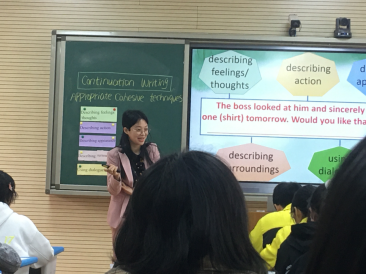 上午,邓万丹讲授示范课——Appropriate Cohesive Techniques。邓老师以一段幽默的对话引出授课主题《合理衔接》,提出问题引导学生思考和讨论如何做到合理衔接。邓老师通过呈现四月联考中的部分考场作文,带领学生分析文章,从中归纳总结出合理衔接的五大微技能,并及时操练巩固,及时评价肯定。邓老师的课堂生动有趣,内容充实,课堂活跃;学生收获满满,教学目标达成度高,受到与会专家和老师的一致好评!