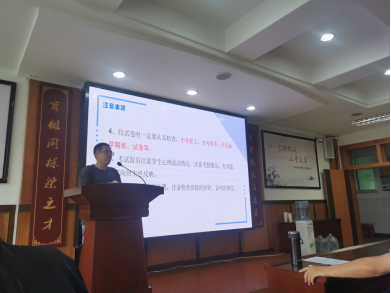 9月2日下午4:20,高三年级九月检测考务会在格物楼3008召开,全体高三年级老师参会,会议内容详实,对近期工作指导意义重大。高三年级将于9月3日、4日举行高三第一次检测,年级副主任张媛媛老师从监考安排、考试安排、注意事项三个方面详细介绍九月检测的安排,从人员、时间、具体事项等方面进行了详细讲解;年级主任陈宜老师在此基础上继续补充,希望老师们在考试前后注意学生状态,考后组内进行详细的分析总结,为下一阶段高三复习做好计划,落实集体备课环节;最后副校长吴爱铭老师强调把考试前的考场布置、考试时的认真监考、日常教室管理当做良好的教育素材,在教学中进入高三答疑状态,对学生进行知识、思想上的指导。