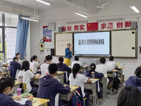 赵琼老师在高三(2)班执教的《战后资本主义世界经济体系的确立》一课,结构完整,立意新颖。从概念入手、设疑,充分调动学生兴趣与思维的同时,加强了学生对本课地位的理解,体现了“大单元设计”理念。以四个探究题展开教学,在问——答——思——点评中兼顾了基础知识与能力拓展。以“特里芬难题”这一悖论的分析,锻炼学生分析、比较的思维能力。最后引导学生体味新时代中国突破经济体系的理念与行动,坚持“四个自信”使教学得到升华,听课老师无不拍手叫绝。