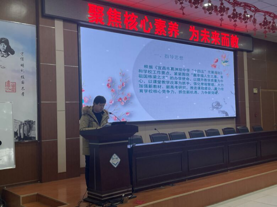会议第一项是总结并颁发2021年秋季学期高二、高三年级“同课异构”授课证书。参与“同课异构”授课的教师团体中,骨干教师与青年教师共同努力,在课堂中磨炼功夫,在课堂外紧抓设计,奉献了一堂堂精彩的优质课,为学校教学发展作出了贡献。