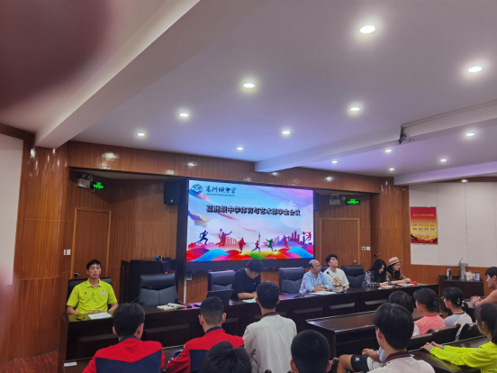 会议第二项,由我校2022届优秀毕业生蔡梓硕同学(现已被华中师范大学录取)和2015届优秀毕业生孙伟同学(天津体院在读博士)通过视频和学弟学妹们讲述高中三年的心路历程,分享学习经验。两位同学都指出高中三年要给自己树立一个明确的目标,合理规划好训练和学习的时间。罗马不是一天建成的,给自己的每个阶段设立一个可以达成的小目标,通过努力奋斗来收获属于自己的成就感。