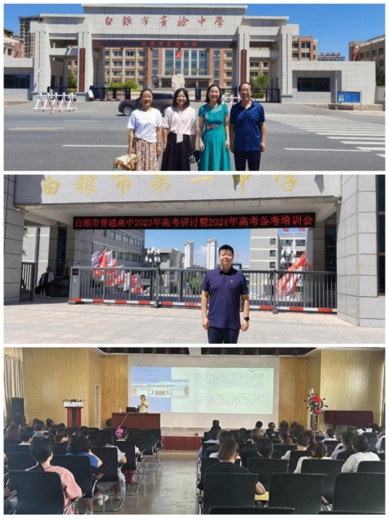 7月30日,我校宜昌名师戈菲、崔征、向春玲三人受甘肃省白银市教育局邀请,为白银市物理、数学、英语学科做了关于2024年新高考复习备考的主题讲座。白银市将于2024年第一次参加新高考,因此请了宜昌市名师团给老师做专题培训。葛中的宜昌名师们介绍了葛洲坝中学三年的备考经验和反思总结。通过教学实际的例子,指引白银市老师如何进行科学高考备考,给了当地老师很大的启发。与会老师积极参与,会后与宜昌名师积极互动,热情高涨。