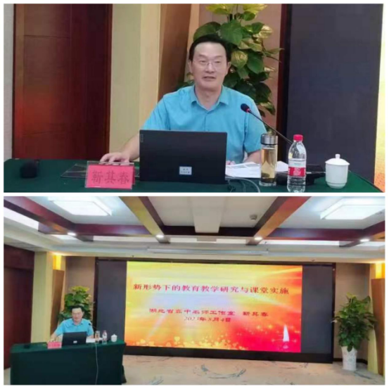 半夏暑雨落,南风蝉始鸣。暑假各地老师培训如火如荼的举行,我校多名教师组成的“名师团队”受邀参加各级各地的培训任务。我校湖北名师靳其春老师为河南部分骨干教师《新形势下的教育教学研究与课堂实施》培训。报告中,靳校长对如何落实新课标、上好新教材、适应新高考给出了详尽意见,对如何脚踏实地教学、培养高素养人才做出了具体建议,对教师们挑战自我、跟上时代的步伐做出了殷切的期望。靳校长的报告获得了与会专家和老师们的一致好评。整个假期,靳其春名师工作室不断地给湖北、河南等多地老师做指导报告。