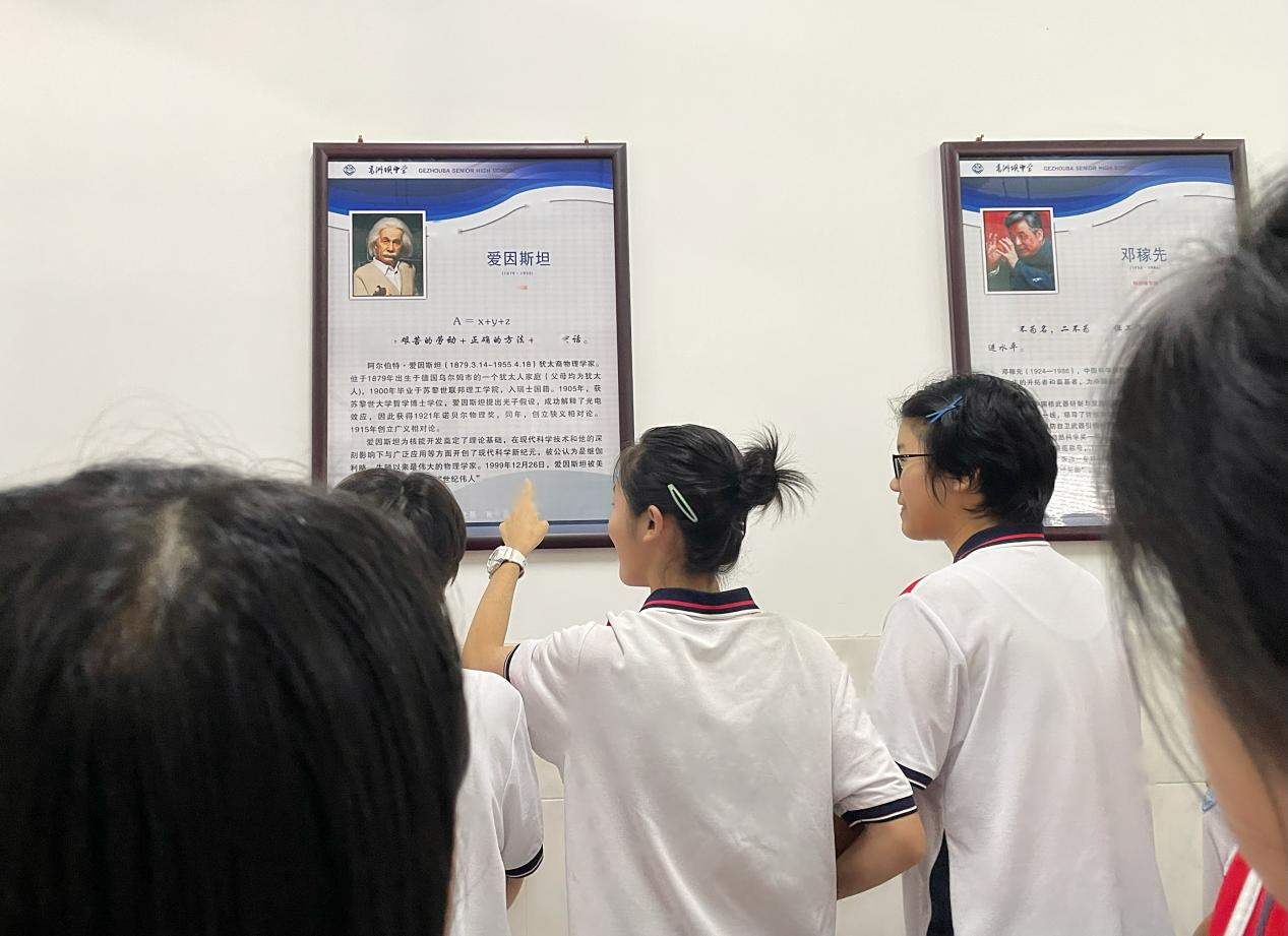 目前,学校已利用格物楼走廊建立数理文化长廊,介绍数理学家及其重大贡献,加深学生对数理发展史的了解。与此同时,还将通过召开“学数理学家,立报国之志”主题班会,引导学生担当责任,共筑强国梦。