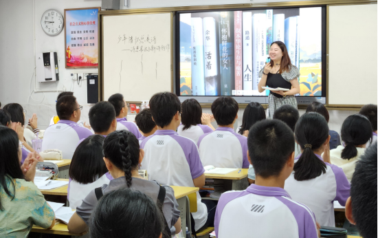 林田老师在统编版语文教材第一单元诗歌教学的基础上,通过方法教授与学生创作、修改实践,带领学生书写青春的情怀,传递青春的思索。林田老师从自创和学生创作的拼贴诗导入,妙趣横生,引导学生感知生活无处不是诗。“使用生词、巧用动词、精选意象、借用修辞、分行变形、情感真挚”,林田老师从这六个角度,和学生一起探讨新诗创作秘诀。从环环相扣的课堂环节到诗意盎然的生成课堂,师生在诗意的和谐中共振,诗性在课堂被唤醒。