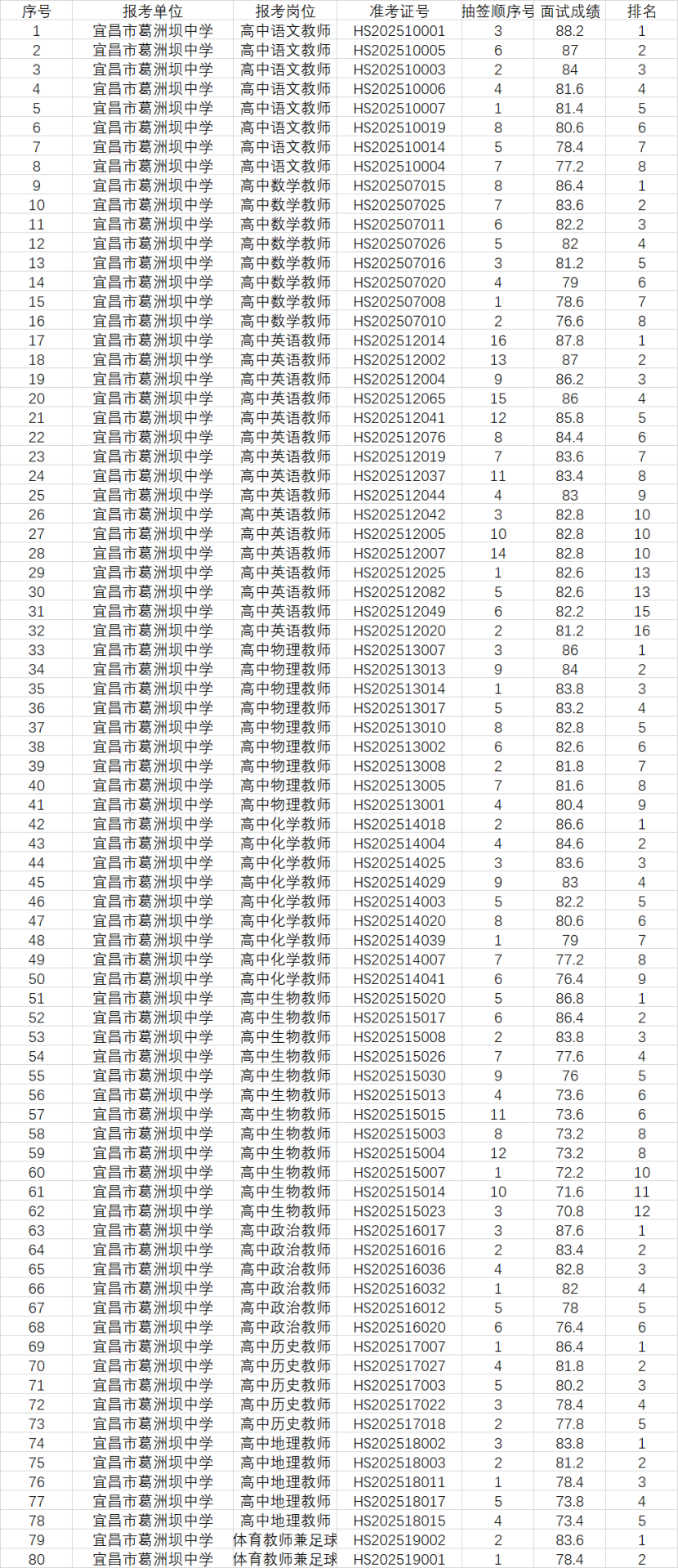 根据《宜昌市教育系统2024年及2025年“招才兴业”事业单位人才引进校园招聘公告•华中师范大学站》安排,现将宜昌市葛洲坝中学2025年“招才兴业”人才引进各岗位面试成绩公告如下: