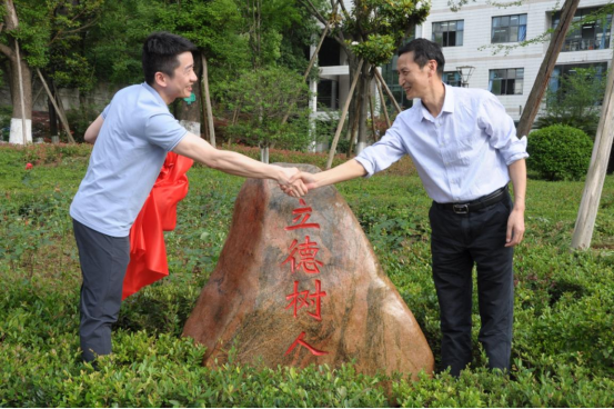 岁月不语,唯石能言。学校校长谭子刚代表学校接受了这块镌刻“立德树人”的文化石,并真诚感谢校友厚爱。
