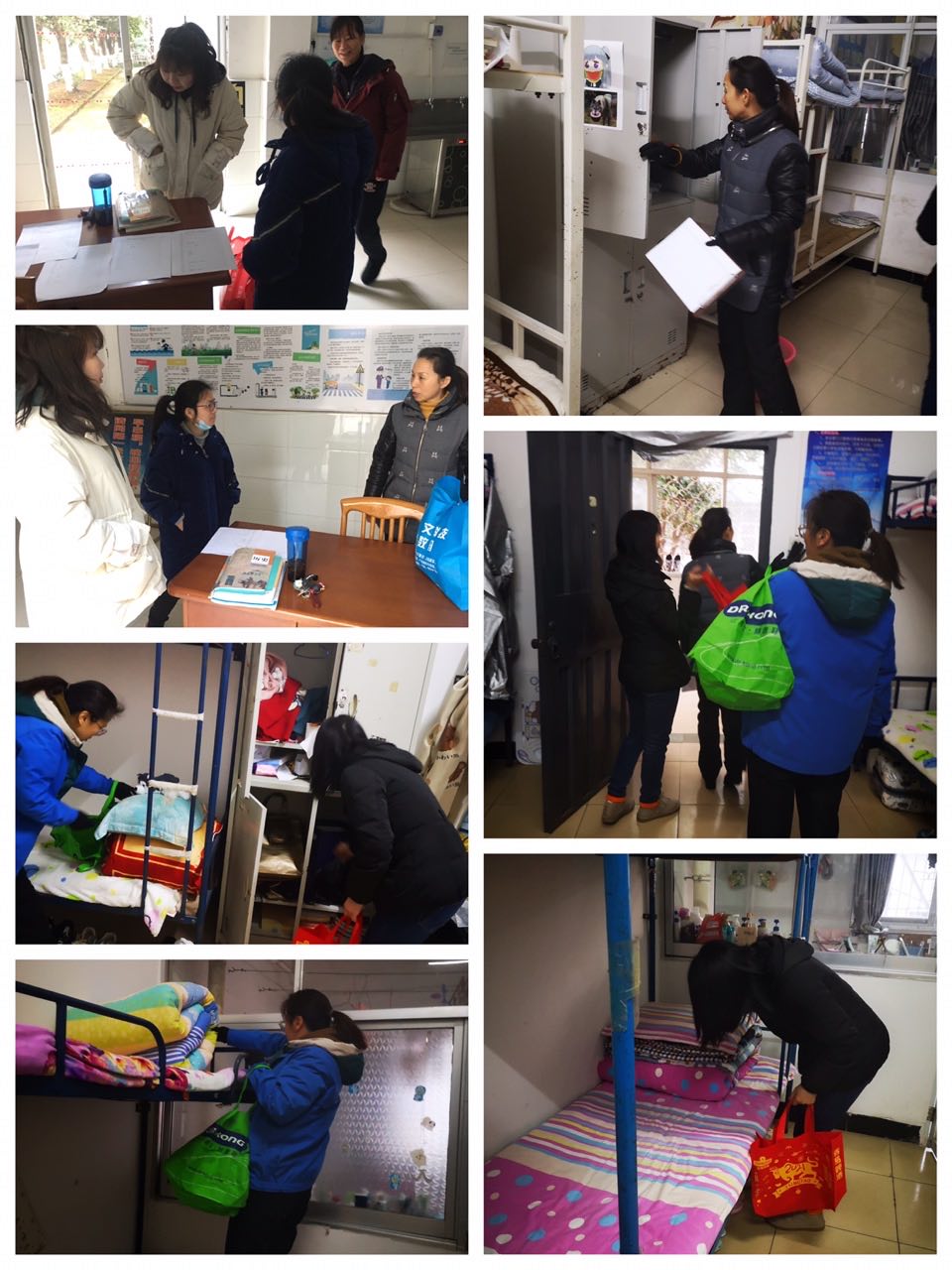 为了进一步落实学生寝室日常管理,引导广大学生培养良好的生活和卫生习惯,提高安全防范意识,促进安全文明校园建设。2022年2月25日上午,学工处组织生活老师对寝室进行安全排查,高一德育副主任向春玲、高二德育副主任罗彦彦参与此次安全排查。生活老师们对男女生公寓检查,对床铺、桌柜、洗漱间分别进行细致检查,对易燃易爆物品、管制刀具进行收缴,对手机、充电宝、台灯、手电筒进行登记,并对违禁物品统一处理,