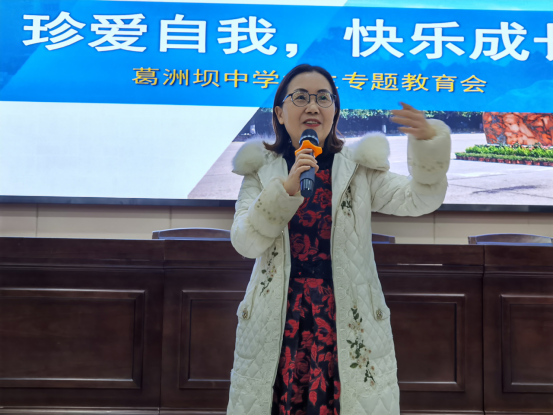 女生如花,芬芳而典雅,为呵护女生健康成长,葛洲坝中学学工处于2021年12月16日召开主题为“珍爱自我,快乐成长—做一名优秀的女生”女生会议。葛中最美教师戈菲老师为全体女生带来精彩报告《做一名优秀的女生》。戈老师从“优秀的女生如何定义”、“怎样正确与男生交往”、“如何做一名优秀的女生”三个方面,结合女生心理特点,进行深入浅出的讲解。戈老师联系生活实际,与大家互动交流,通过郑爽事件、葛中优秀校友-