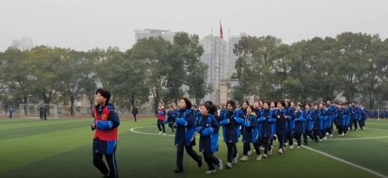 为了不断提高学生体质健康水平,大力推进学校课间跑操活动,培养学生终身体育锻炼的思想,2021年12月24日上午葛洲坝中学学工处联合体育组组织全体学生举行了跑操比赛。担任本次比赛的评委有高三年级:陈宜老师、罗静老师、张媛媛老师、陈新国老师、杨劼老师。高一年级:胡安林老师、向春玲老师、杨久白老师、宋涛老师、熊巍老师。高二年级:陈福超老师、张待老师、罗彦彦老师、蔡璐老师。每个年级的老师交替打分。体育