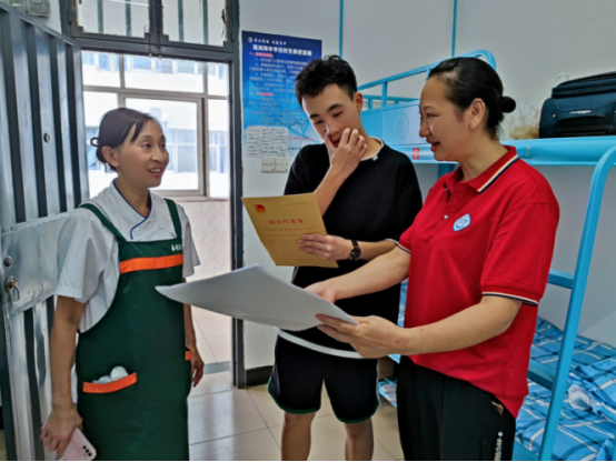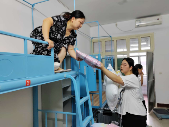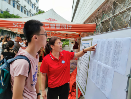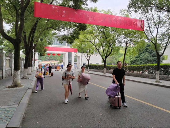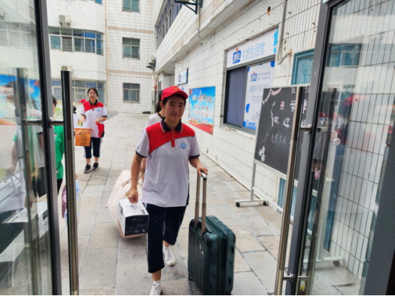 宿舍楼下,生活老师微笑相迎,热情地提示新生看宿舍分配表、登记领取床品,志愿者也热情服务,帮助新生搬运行李,上上下下无数趟,汗水早已湿透他们的衣服,但他们依然用热情和微笑来服务新生。这是“葛中之光”志愿者的一诺无悔。