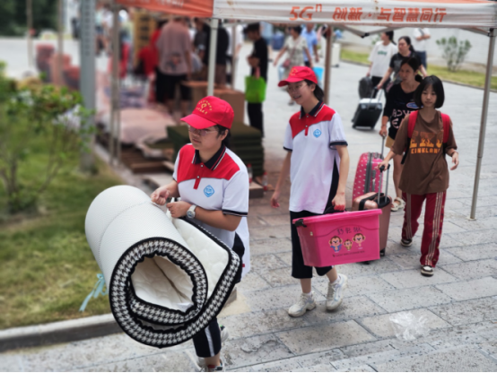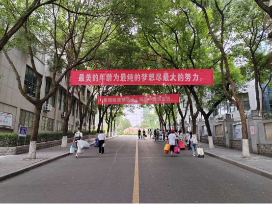 致远路横幅鲜艳,温馨的欢迎语彰显着学校真挚的欢迎。这群追梦少年,沿着婆娑绿影步入校园,他们眼中有光,胸中有志。礼仪社志愿者热情地为家长解疑答惑,小红帽志愿者主动帮助新生搬运行李。