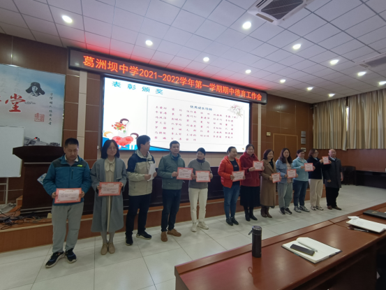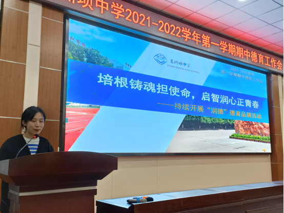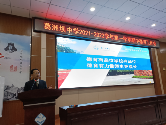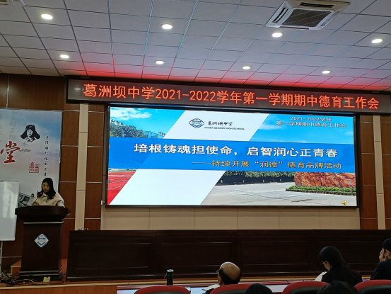 在“立德树人,德育为先”的育人宗旨的引领下,学校管理各项工作有条不紊地展开。为进一步落实立德树人根本任务,充实我校“润德”德育品牌,2021年11月12日下午,葛中全体教师齐聚一堂召开主题为“培根铸魂担使命,启智润心正青春”的期中德育工作会。