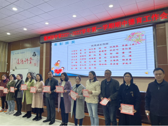 在葛中总有那么一群人,迎着晨曦陪伴学生晨读,夜幕四合仍坚持下班辅导,无怨无悔,默默守候,会议第三项,对2020-2021学年第二学期优秀成长导师及德育论文获奖进行颁奖。