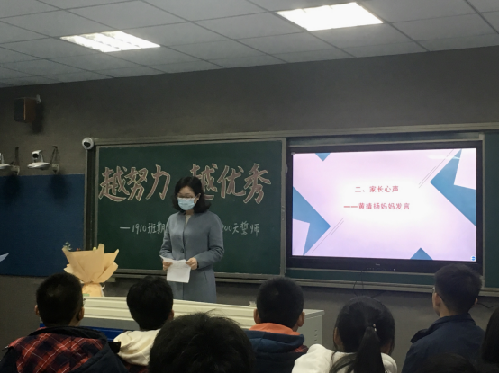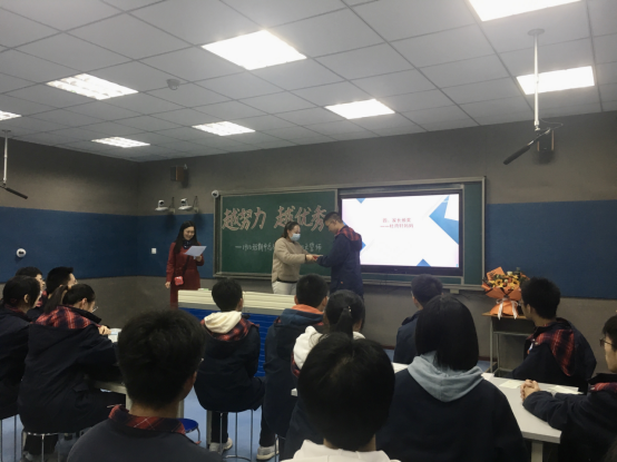 班会分为三个环节:一,你努力的样子真好看;二,你努力,我们在陪伴;三,你努力,你就是黑马。李老师和学生精心设计,班会课从表彰切入主题,结合开学两个多月班主任的观察,李老师对个人进步、集体进步同学进行点名表扬,然后请优秀代表及家长分享心路历程,安排家委会代表为全班同学送上礼物,同学们也把最美的鲜花和最真的感谢送给科任老师。“乾坤未定,你我皆是黑马”,在李老师的殷切话语中,学习委员曾云鸥同学发言,对照联考数据找差距和对策。相信,找准方向,厚积薄发,每个人都是黑马,一定不会辜负自己的努力付出!