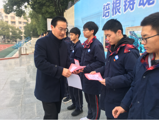 靳校长为男生优秀寝室长颁奖