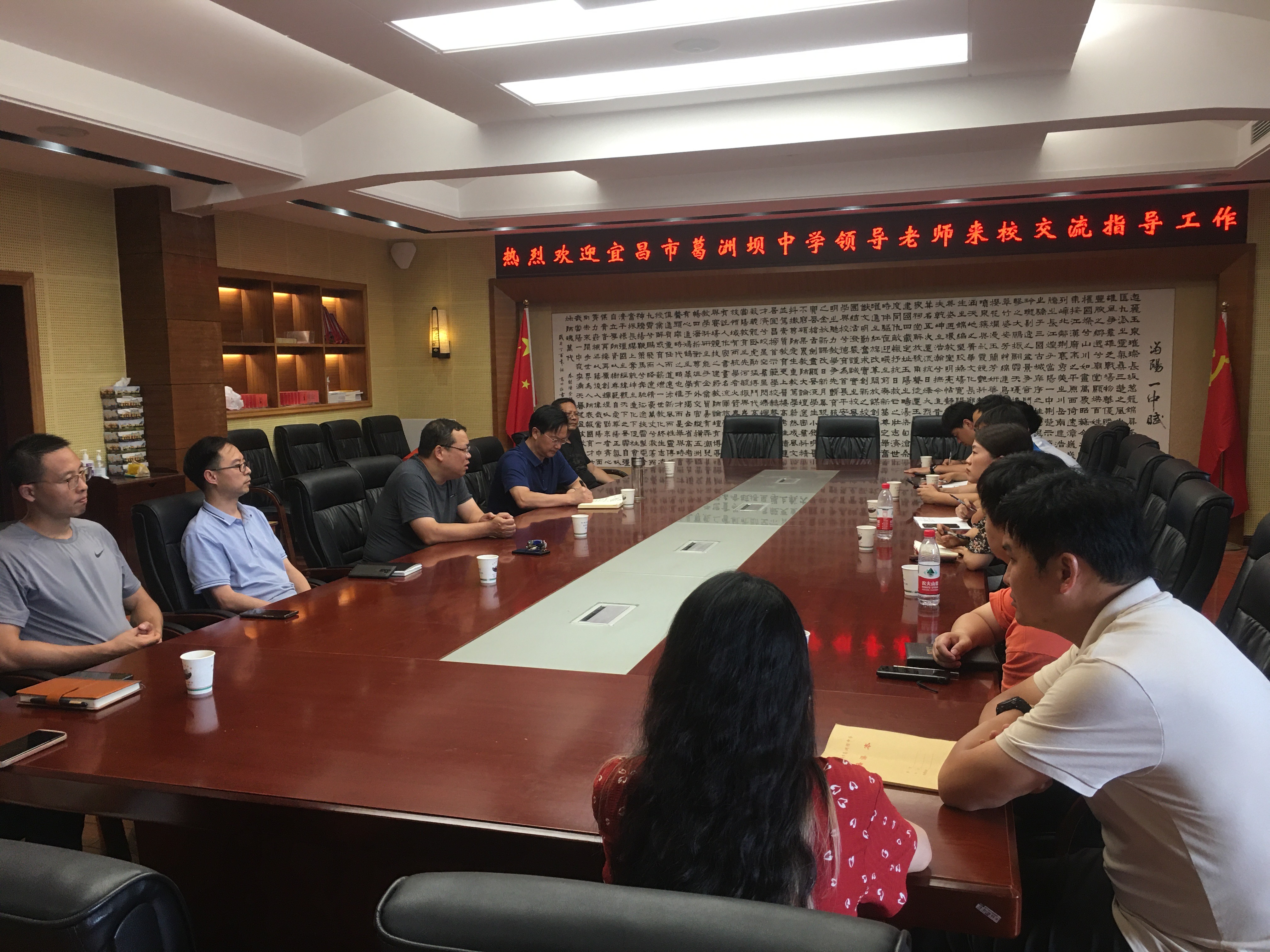 “长坂雄风,信义当阳”,第二站来到了当阳市第一高级中学,校长曹良意老师、副校长贺威老师、副校长向安定老师及有关处室主任热情接待。双方就校园文化、教研组建设、当前面临的困难、学校发展等方面进行全面交流。当阳一中“爱的文化、仁的文化、勇的文化”让每一位老师都肩负责任感和使命感,得天下之英才而育之,精诚所至,金石为开,让我们受益匪浅。
