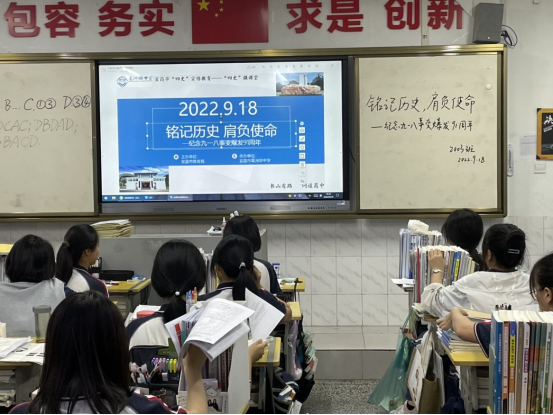 微班会上,同学们通过观看纪录片,了解了“九一八事变”的历史背景、事件经过及日本侵华战争的累累罪行,见证了中华民族英勇抗击日本侵略者的伟大过程。一幅幅画面,极大地激发了同学们的民族荣辱感,也让他们认识到了肩上的重任。