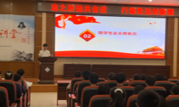 2020年9月18日,新一届学生会改选大会暨学生干部会在学术报告厅隆重举行。大会由陈宜老师主持,校长谭子刚、副校长靳其春以及社团指导老师出席了此次大会,参会的有新一届学生会成员,学校各社团社长以及各班班长等。 伴随着庄严的国歌声,本次大会拉开了序幕。首先由现学生会主席余陶乐发言,余陶乐同学表示会继承和发扬团总支学生会的优良传统,同时搭建新平台、开创新的局面,为同学们服务、更为学校添彩。