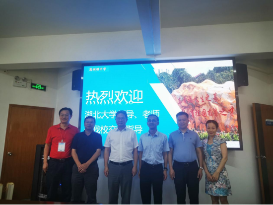 6月28日上午,湖北大学党委常委檀坤华一行六人来我校交流指导,学校校长吴益民、副校长颜颉、副校长靳其春、工会主席李群热情接待。