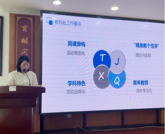 教务处董浩主任和教科处郑军倩主任对本学期教学教研工作做全部部署,详细讲解了教备组长职责及全体教师的备教批考辅等各环节要求。教务处李璇副主任宣读学校教务巡查制度,强调教务处将强化教学管理,真抓教学质量。