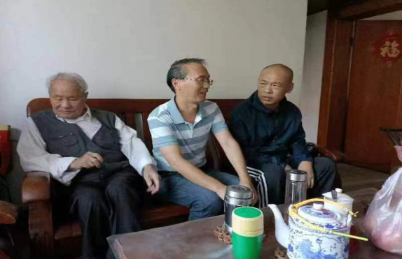 校长吴益民、工会主席李群与学党湾社区书记一道慰问结对老党员。