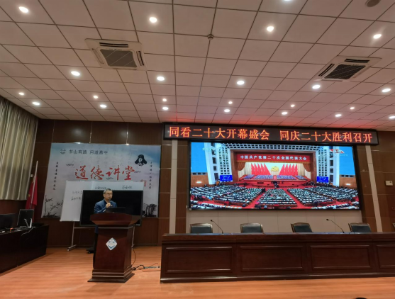 2022年10月16日上午10时,举世瞩目的中国共产党第二十次全国代表大会在北京人民大会堂开幕。这次大会,是在全党全国各族人民迈上全面建设社会主义现代化国家新征程、向第二个百年奋斗目标进军的关键时刻召开的一次十分重要的大会。宜昌市葛洲坝中学组织全体党员及中层干部集中观看党的二十大开幕盛况,聆听习总书记代表中国共产党第十九届中央委员会向大会作的报告。