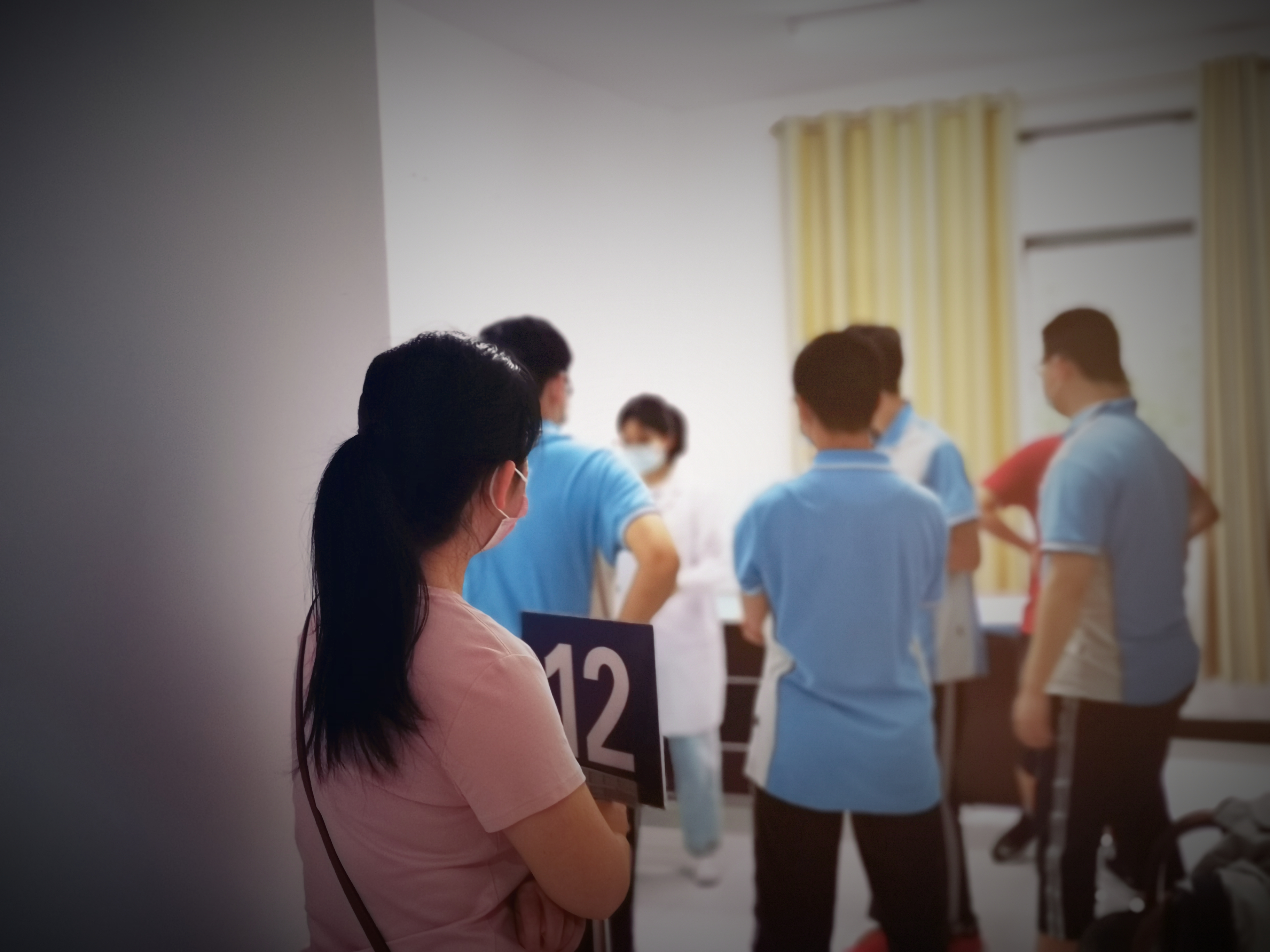 学生按既定分组在综合楼下排好队,教务处主任杨勇不厌其烦地一遍遍提醒他们:一要注意防疫要求,戴好口罩、注意间距;二要尊重医护人员,听从安排、恭谦有礼。整场体检非常顺利,赴我校开展体检工作的26名医护人员对我校学生高度赞扬,在医院、学校的默契配合下,校内常规体检在中午14:30全部结束。