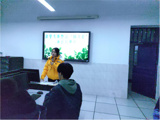 会议开始,总务处副主任李璇首先提问:“同学们,你们发现了食堂哪些变化?”有学生回答食堂阿姨变温柔了;有学生说食堂早餐种类变丰富了,等等。接着李璇副主任就11月18日师生第一次食堂满意度测评结果以及测评后的食堂整治与改进工作做了说明。
